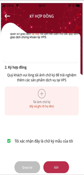 Bước 5 -6 : Xác thực khuôn mặt, và ký hợp đồng online ( ký trên tờ giấy ghi rõ họ tên sau đó chụp trên app)