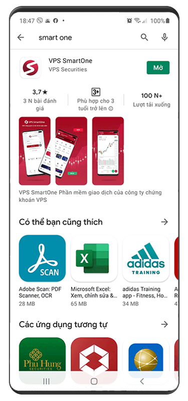 Bước 1: Tải App Smartone tại App Stores/ CH Play. Bấm vào mở tài khoản